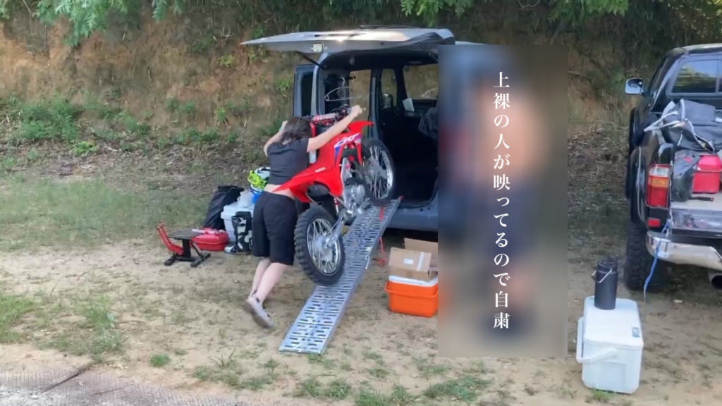 ちなみにCRF125Fは軽いので女性一人でも軽々載せることができます。