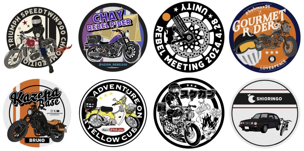 他、ライダースカフェのロゴ制作や個人のステッカーデザインなどデザイン関連の仕事多数